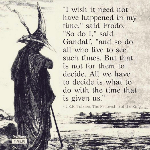 My former boss shared this from Tolkien, which my wise sister has shared on occasion, as well, and it is a hearty reminder of the providence of God for the times in which we live: